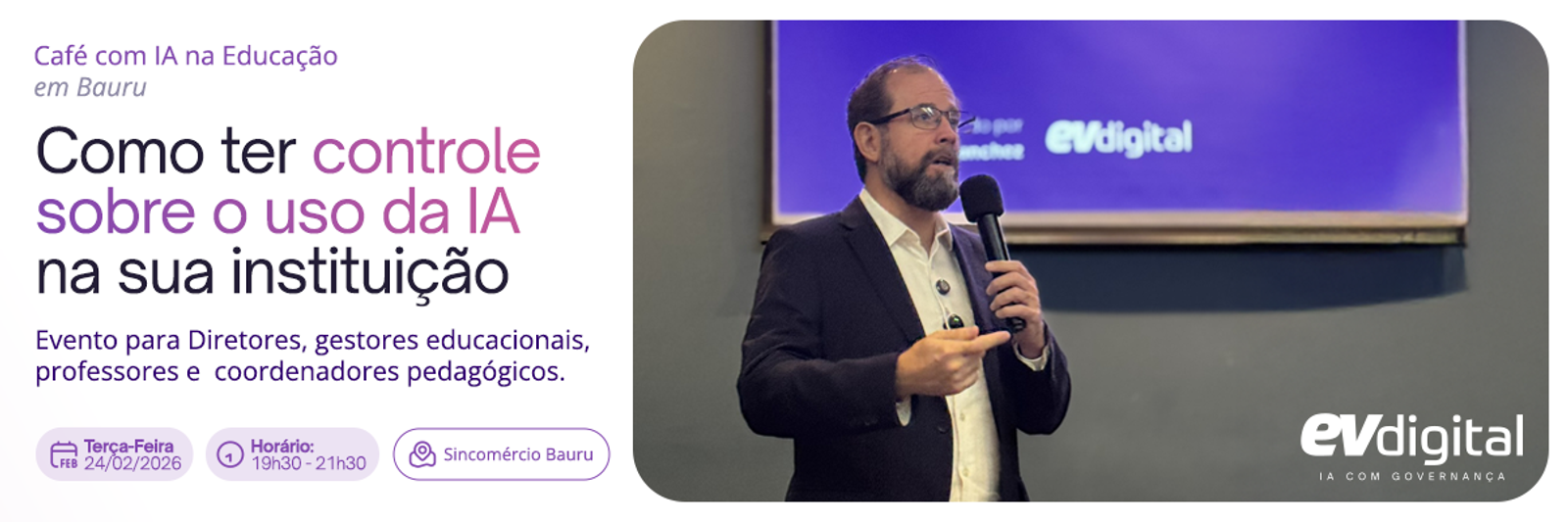 O Café com IA – Educação é um encontro exclusivo para escolas, faculdades e profissionais da área educacional que desejam compreender como estruturar o uso da IA com segurança, controle e direcionamento pedagógico.