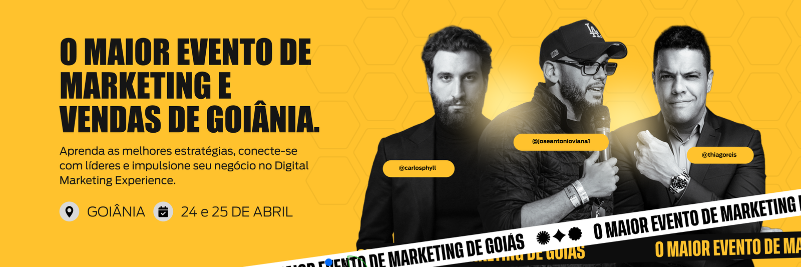 Nos dias 24 e 25 de ABRIL, Goiânia será o centro das maiores estratégias e inovações do marketing digital com o Digital Marketing Experience — um evento pensado para quem deseja revolucionar seus resultados em vendas, gestão de negócios e empreendedorismo.